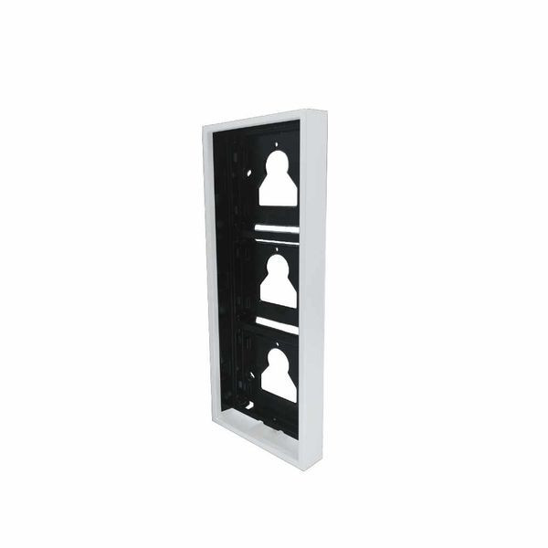 Aufputzgehäuse für Ultra, 3 Module. Es besteht aus der Metallhalterung zur Befestigung der Module ohne den Einsatz von Schrauben, sowie dem Rahmen aus kataphoresebehandeltem Aluminiumdruckguss zur Erhöhung der Beständigkeit gegen chemische und umweltbedingte Korrosionsprozesse, einschließlich UV-Strahlen. Überstand von der Wand nur 35 mm. Farbe: weiss. Abmessungen: 110x289x35mm.