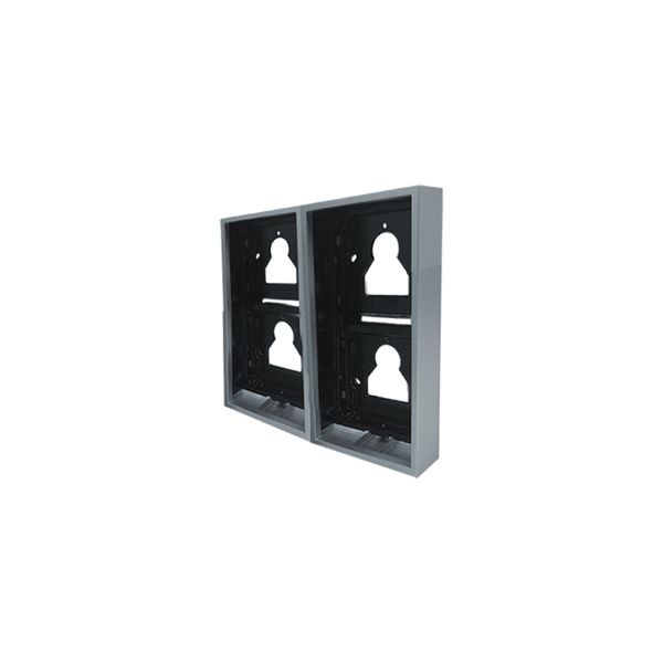 Aufputzgehäuse für Ultra, 2+2 Module. Es besteht aus der Metallhalterung zur Befestigung der Module ohne den Einsatz von Schrauben, sowie dem Rahmen aus kataphoresebehandeltem Aluminiumdruckguss zur Erhöhung der Beständigkeit gegen chemische und umweltbedingte Korrosionsprozesse, einschließlich UV-Strahlen. Überstand von der Wand nur 35 mm. Farbe: silber. Abmessungen: 221x198x35mm.