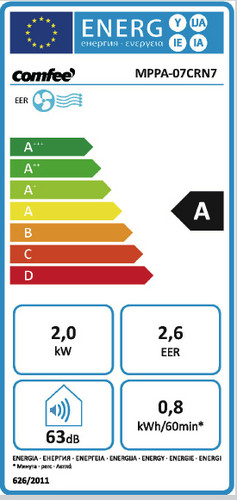 Kühlen, Entfeuchten, Ventilieren, 7.000 BTU/h Leistung, geeignet für Räume bis 25m² / 70m³, Kältemittel R290, inkl. Fernbedienung, LED Display, Temperaturbereich 17°C bis 35°C, Entfeuchtungsleistung 46,56L/24h, Timer, Schalldruckpegel (hi/mi/lo)53/-/49, Schallleistungspegel 63 dB(A), 3 Jahre Garantie