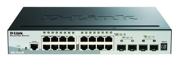 Die DGS-1510-Serie bildet die neueste Generation der Smart Managed Switches von D-Link mit 10-Gigabit-Anschlüssen. Der DGS-1510-20 verfügt über 16 Gigabit RJ45 Anschlüssen sowie zusätzliche SFP / SFP+ Ports.