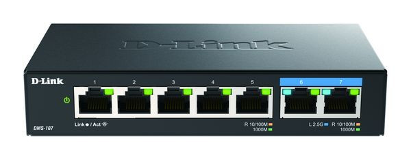 Der 7-Port Multi-Gigabit Unmanaged Switch (DMS-107) mit zwei 2,5-Gigabit- und fünf Gigabit-Ports bietet eine schnelle und einfache Möglichkeit, Ihr Netzwerk aufzurüsten, indem Engpässe beseitigt werden, um Leistung und Durchsatz zu maximieren. Die 2,5-Gigabit-Ports bieten eine Verbindung mit hoher Bandbreite zu NAS-Geräten (Network Attached Storage) und Wi-Fi 6-Routern/Zugangspunkten, während die Gigabit-Ports eine schnelle und zuverlässige Verbindung zu mehreren Gaming-Computern und Arbeitsstationen ermöglichen. Er ist ideal für anspruchsvolle Unternehmens- oder Heimnetzwerke und ermöglicht Benutzern den blitzschnellen Zugriff auf Netzwerkressourcen und die Übertragung großer Multimediadateien.