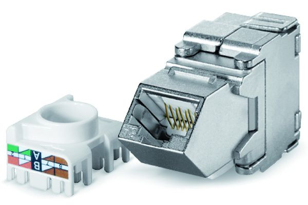 Modul KS-TA 1/8, 45 Grad gewinkelt, Cat. 6/EA Für die Übertragung von digitalen und analogen Sprach-, Bild- und Datensignalen. Das Modul KS-TA übertrifft die Produktanforderungen gemäß IEC 60603-7-5, geschirmt, für die Übertragung von Kategorie 6 bis 250 MHz. In Verbindung mit Datenkabeln der Kategorien 7 und 7A erfüllt es auch die Anforderungen an Channel der Klasse EA bis 500 MHz. Dadurch ist es für die Übertragung von 10-Gigabit-Ethernet gemäß IEEE 802.3an geeignet. Die Anforderungen für Power over Ethernet Plus (PoE+) gemäß IEEE 802.3at werden voll erfüllt. Das Modul KS-TA ist ausschließlich mit dem Patchpanel KS24x-s (Art.-Nr. 418023) verwendbar. Die um 45° gewinkelte Modulfront ermöglicht Patchkabelabgänge wahlweise nach links oder rechts. Zink-Druckgussgehäuse mit Clip-Befestigung