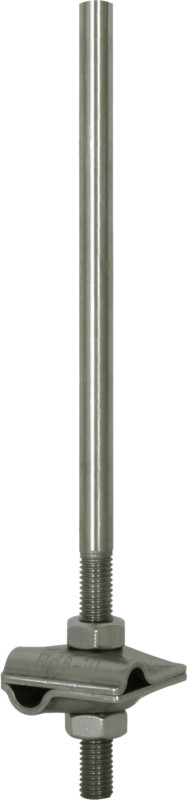 Fangspitze mit MV-Klemme NIRO, Fangspitze mit MV-Klemme zum Einschrauben in den Kopf des Stützrohres und zum Befestigen der Fangleitungen (Drähte oder Seile) mit Gewinde M10