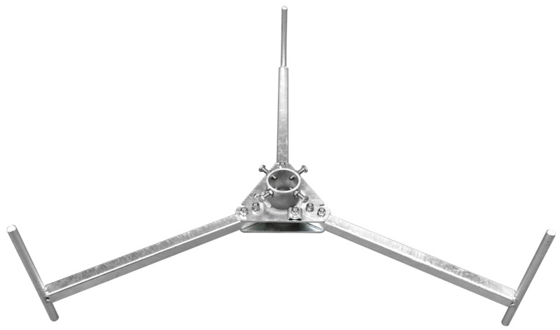 Dreibeinstativ zum freien Errichten von Stützrohren DEHNiso-Combi (D50 Länge 3200 mm) oder Fangstangen D40 (Länge 3000mm). Zum Errichten mit Betonsockeln mit Keiltechnik, ohne zusätzliche Befestigung an Konstruktionselementen. Mit Anpassung an die Dachneigung bis max. 10°. Ausführung klappbar.