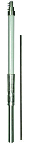 Stützrohr GFK/NIRO mit innenliegendem Endverschluss und PA-Federelement für die HVI power Leitung, zum getrennten (isolierten) Aufbau von Fangeinrichtungen mit Fangspitze. Zum Einhalten des Trennungsabstandes zu elektrisch leitenden Teilen nach DIN EN 62305-3 (VDE 0185-305-3). Rohr D50 mm aus glasfaserverstärktem Kunststoff (GFK), UV-stabilisiert, Farbe lichtgrau, Materialfaktor km= 0,7. Ausführung einteilig, kombiniert mit Fangspitze (D10 mm, Länge 1000 mm) aus NIRO.