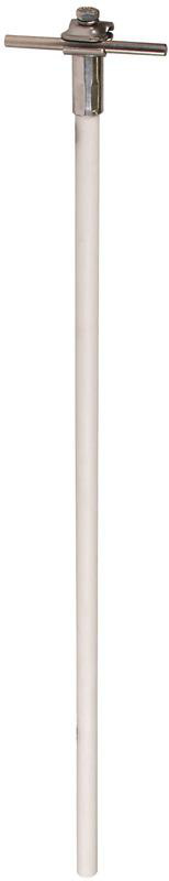 Distanzhalter für Leitungen zur Einhaltung des Trennungsabstandes nach DIN EN 62305-3 (VDE 0185-305-3). Distanzstab aus glasfaserverstärktem Kunststoff (GFK) D16 mm, UV-stabilisiert, Farbe lichtgrau, Materialfaktor km= 0,7. Ausführung mit MMV-Klemme für Kreuzungspunkte (feste Leitungsführung), für die Montage z. B. im Betonsockel.