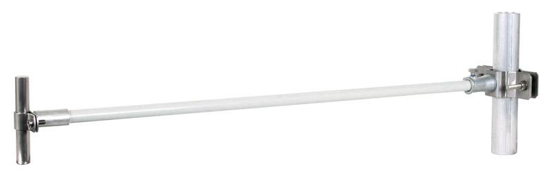 Distanzhalter für Fangstangen zur Einhaltung des Trennungsabstandes nach DIN EN 62305-3 (VDE 0185-305-3). Distanzstab aus glasfaserverstärktem Kunststoff (GFK) D16 mm, UV-stabilisiert, Farbe lichtgrau, Materialfaktor km= 0,7. Ausführung mit Stangenhalter (feste Leitungsführung) und Rohrschelle (Klemmbereich D40-60 mm).