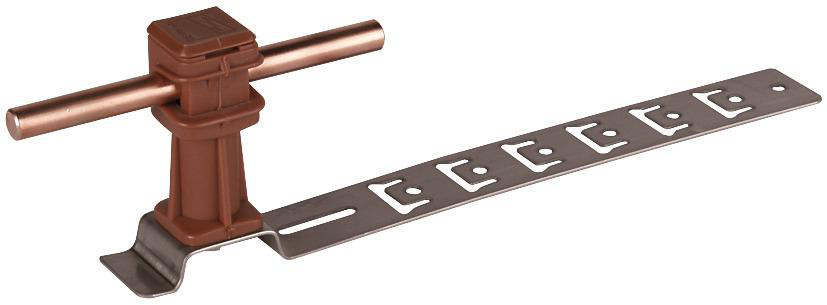 | Kurzbeschreibung | Dachleitungshalter UNIsnap NIRO/K-braun H 36mm Rd 8mm m. gepraegt. Strebe L 205mm |