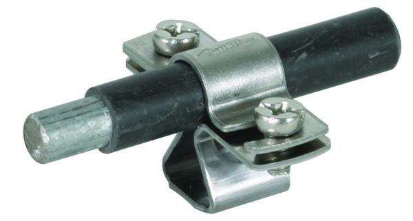 Leitungshalter DEHNhold mit geschlitztem Überleger, zum Befestigen von Rundleitern mit Kunststoffmatel. Ausführung mit Innengwinde.