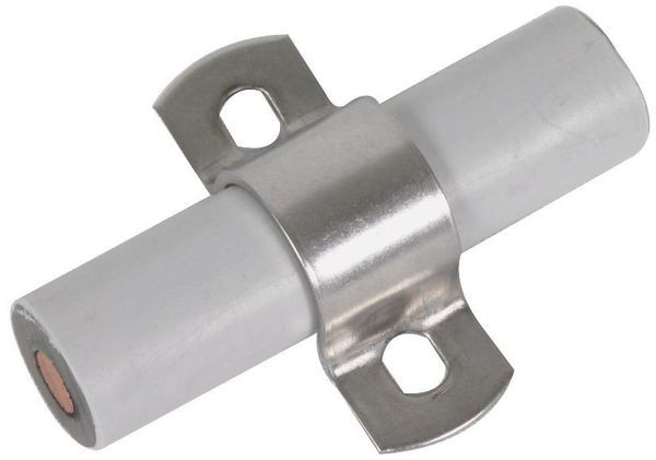 Zweischrauben-Überleger für direkte Wandmontage der CUI-Leitung. Durch diese Montageart (ohne Abstand) kann die Leitung z. B. an Schulen oder Kindergärten nicht als Kletterhilfe verwendet werden. Ausführung in NIRO.