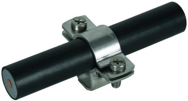 Leitungshalter für HVI Leitung / CUI Leitung, mit Zweischrauben-Überleger, Ausführung NIRO, z. B. für Wandmontage.