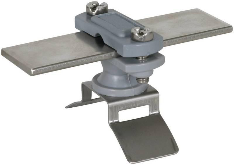 Kunststoff-Leitungshalter zum isolierten Befestigen von Erdeinführungen an metallenen Regenfallrohren. Damit ist ein Messen ohne Demontieren möglich. Ausführung für Rundleiter oder Flachbänder, feste Leitungsführung, aus wetterbeständigem Kunststoff, UV-stabilisiert und halogenfrei.