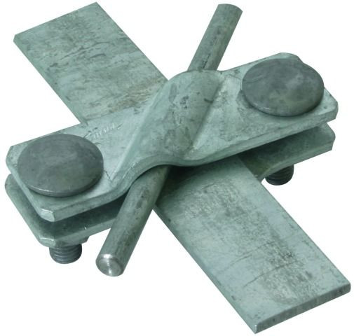 Schräg-Verbinder-Klemmen nach DIN EN 62561-1, für Kreuz-, Parallel- und T-Verbindungen von Rund- und Flachleitern. Ausführung mit Verdrehschutz der Schrauben M10.