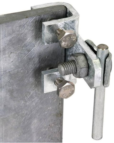 Anschlussklemme für Stahlträger nach DIN EN 62561-1, für den Anschluss an Stahlkonstruktionen. Ausführung waagrecht mit Klemmbock, Anschluss längs oder quer.