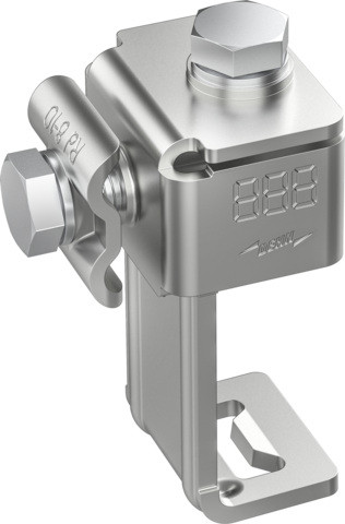 Anschlussklemme mit Klinge für Stahlträger nach DIN EN 62561-1, für den Anschluss an Stahlkonstruktionen. Ausführung mit Doppelüberleger.
