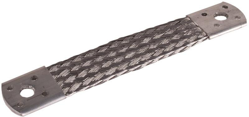 Überbrückungsband nach DIN EN 62561-1, zum Verbinden von Metallverkleidungen (Nieten) oder als Dehnungsausgleichsstück für Runddrähte. Ausführung kurz, Anschluss z. B. mit KS-Verbinder.