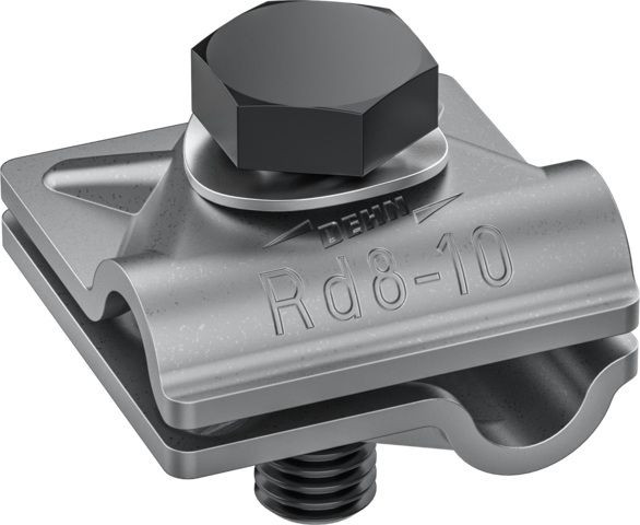 MehrzweckVerbindungs-Klemme nach DIN EN 62561-1, zur universellen Verwendung als Kreuz-, T- und Parallelklemme von Rundleitern. Ausführung zweiteilig mit Sechskantschraube, Federscheibe und Gewinde im Unterteil.