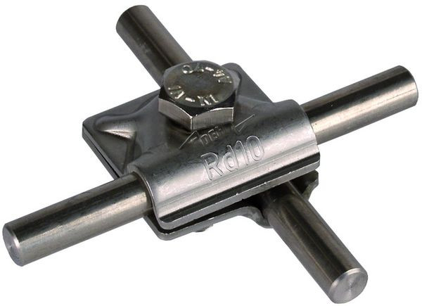 MehrzweckVerbindungs-Klemme nach DIN EN 62561-1, zur universellen Verwendung als Kreuz-, T- und Parallelklemme von Rundleitern. Ausführung zweiteilig mit Sechskantschraube und Gewinde im Unterteil.