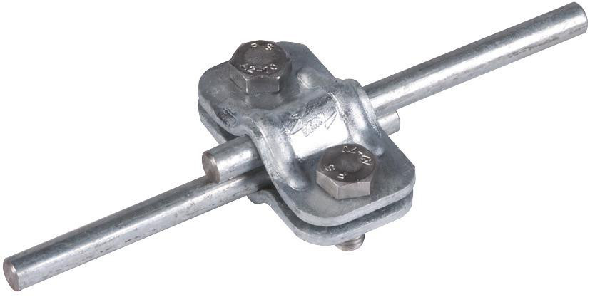 UNI-Trennklemme nach DIN EN 62561-1, zum Verbinden der Ableitung mit der Erdeinführung. Ausführung ohne Zwischenplatte für zwei Rundleiter.