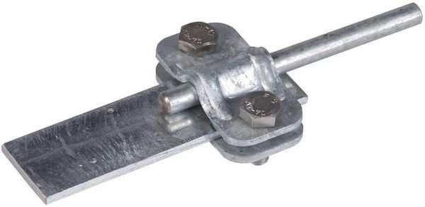 UNI-Trennklemme nach DIN EN 62561-1, zum Verbinden der Ableitung mit der Erdeinführung. Ausführung ohne Zwischenplatte für Rund- und Flachleiter.