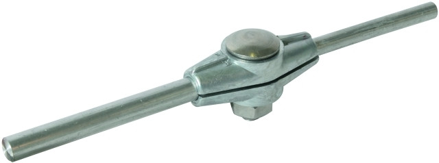 EinSchrauben-Trennklemme nach DIN EN 62561-1, zum Verbinden der Ableitung mit den Erdeinführung.
