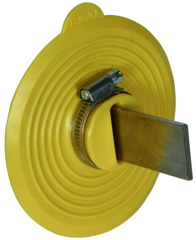 Dichtmanschette für Durchführungen bei wasserdichten Fundamentplatten / Wänden (z. B weiße Wanne). Druckwasserdichte Ausführung zum Aufschieben auf Flachleiter mit NIRO-Spannbändern. Mit Druckwasserprüfung bis 1 bar, die eine Einbausituation bis zu einer Tiefe von 10 m gegenüber stehendem Wasser darstellt, zusätzlich geprüft mit Druckluft 5 bar nach DIN EN 62561-5.