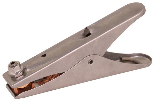 Erdungszange zur kontrollierten Erdung / ableiten statischer Aufladung von Tankwagen, Flugzeugen, Containern und Behältern. Auch für die Anwendung in explosionsgefährdeten Bereichen geeignet. Ausführung groß, Messingbacke ohne Stahlspitzen und Kontaktbügel aus Kupfer. Anschluss: Gewindebolzen M10 mit Mutter.