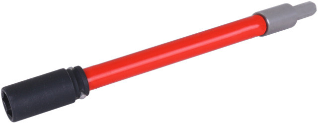 Edelstahl Verlängerungswerkzeug ca. 200 mm mit magnetisch gefederter Stecknuss (SW17) und Sechskantaufnahme für die Verwendung mit einem Akkuschrauber (Bohrfutter). Mit rotem Freilauf Griff.