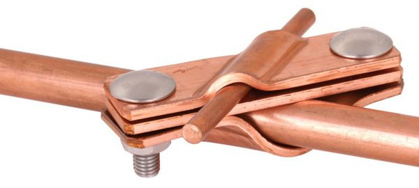 Anschlussschelle nach DIN EN 62561-1, zum Anschluss von Rundleitern, Seilen und Flachbändern an Tiefenerdern. Ausführung schräg mit Flachrundschraube, auch für ungeschnittene Erdleitungen.