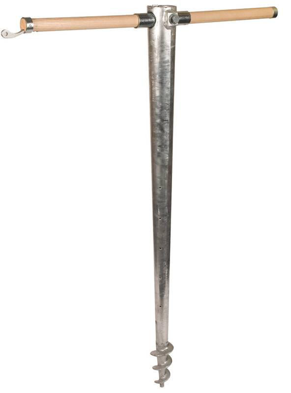 Erdungsrohr nach VG 96953-10, mit Bohrspirale zur Erdung beweglicher Objekte wie z. B. Fahrzeuge, Stromerzeuger. Ausführung mit Drehgriff (abnehmbar) und Schraube M10.