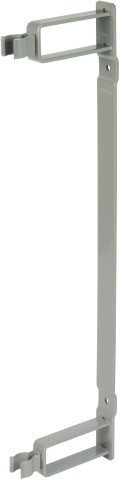 Haltevorrichtung für Spannungsprüfer und Erdungsstange beliebiger Länge. Lochabstand 390 mm, Bohrungen Ø7 mm für einfache Wandmontage.