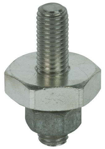 Anschlussstück zum Anschrauben, mit Gewindebolzen und loser Sechskantmutter als erdseitige Anschließstelle nach DIN VDE 0683-100 (EN/IEC 61230) an der Erdungsanlage.