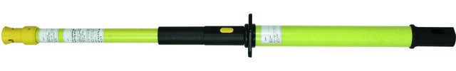Erdungsstange zweiteilig, Ausführung Spindel mit Querstift. Arbeitskopf mit Bajonettkupplung und Druckfeder für sicheren Halt der freigeführten Erdungs- und Kurzschließvorrichtung zum Erden und Kurzschließen an Starkstromanlagen nach DIN VDE 0105-100 (EN 50110). Abschlussteil mit verdrehsichere Kunststoffsteckkupplung zur einfachen und schnellen Handhabeverlängerung.