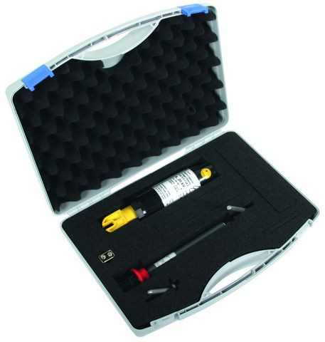 Kunststoffkoffer, leer, für Prüfkopf PHE III. Mit Schaumstoffeinsatz.