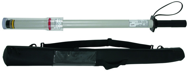 Abstands-Spannungsprüfer HSA 205, umschaltbar, mit elektronischem Anzeigegerät und optischer und akustischer Anzeige. Zum berührungslosen Feststellen der Spannungsfreiheit in Hochspannungsanlagen.