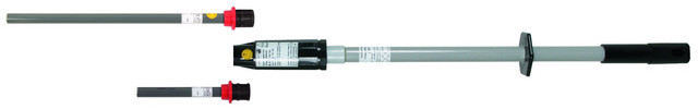 Kapazitiver Spannungsprüfer PHE III als zusammengehörige Bauart nach DIN VDE 0682-411 (EN/IEC 61243-1) zum allpoligen Feststellen der Spannungsfreiheit an der Arbeitsstelle nach DIN VDE 0105-100 (EN 50110-1) in elektrischen Anlagen. Kategorie "S" für Schaltanlagen und Freileitungen und Kategorie "L" für Freileitungen. Auch bei Niederschlägen verwendbar. Mit optischer und akustischer Anzeige und Eigenprüfvorrichtung.