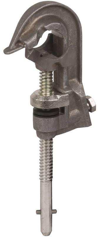 Phasenschraubklemme (Normalausführung) mit langer Schraubspindel und Querstift als phasenseitiges Anschlusselement nach DIN VDE 0683-100 (EN/IEC 61230) für Freileitungen zur Bestückung von Erdungs- und Kurzschließseilen. Mit Verdrehungsschutz Ausführung PK 1.
