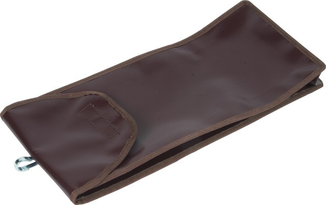 Aufbewahrungstasche, leer, mit Klettverschluss und Einhängehaken für isolierende Handschuhe.