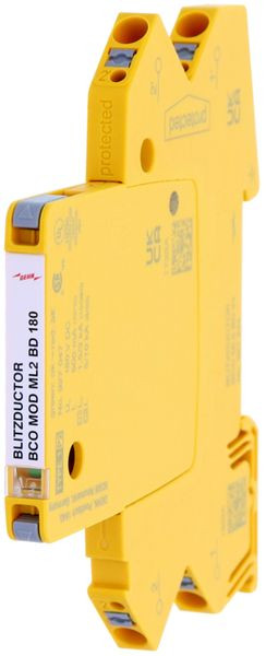 Platzsparender, modularer Kombi-Ableiter in 6 mm Baubreite und Push-in Anschlusstechnik mit Statusanzeige zum Schutz von 1 Doppelader erdpotentialfreier symmetrischer Schnittstellen. Mit Signaltrennung für Wartungszwecke.