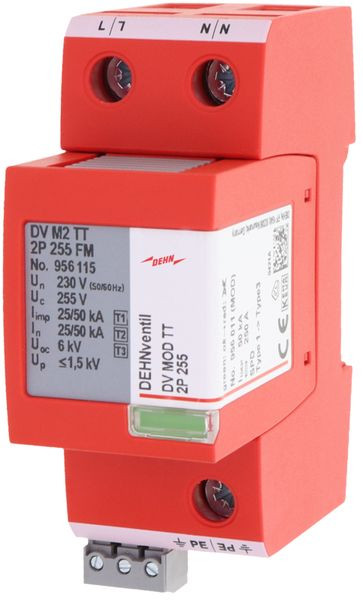 | Kurzbeschreibung | Kombi-Ableiter Typ1+2+3 DEHNventil M2 fuer einphasige TT- und TN-Systeme mit FM |