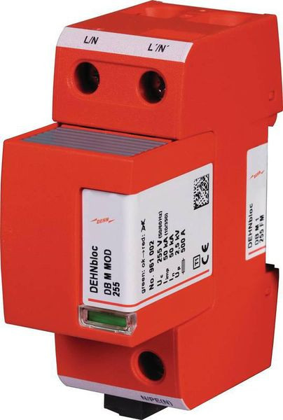 DEHNbloc® M, Einpoliger, modularer, koordinierter Blitzstrom-Ableiter zum Schutz von Niederspannungs-Verbraucheranlagen vor Überspannungen auch bei direkten Blitzeinschlägen. Zum Einsatz im Blitz-Schutzzonen-Konzept an den Schnittstellen 0A ? 1.Ableiter Typ 1 nach EN 61643-11-Bestehend aus Basisteil und gesteckten Schutzmodulen-Höchste Anlagenverfügbarkeit durch RADAX-Flow-Folgestrombegrenzung-Ausschaltselektiv zu 35 A gL/gG-Sicherungen bis 50 kAeff Kurzschlussstrom-Ohne zusätzliche Leitungslänge auf Überspannungs-Schutzgerät DEHNguard direkt koordiniert-Doppelklemmen für V-Anschluss-Multifunktionsanschluss für Leiter und Kammschienen-Funktions-/Defektanzeige durch Markierung im Sichtfenster-Einfacher, werkzeugloser Schutzmodul-Wechsel durch Modulverriegelungssystem mit Modulentriegelungstaste - DEHNbloc M 1 ..., Einpoliger, modularer koordinierter Blitzstrom-Ableiter mit hoher Folgestrombegrenzung. Höchste Dauerspannung: 150 V AC, 255 V AC; 320 V AC, Blitzstrom-Ableitvermögen bis 50 kA (10/350). Tiefer Schutzpegel. Einpoliger, koordinierter Blitzstromableiter DEHNbloc modular, Typ 1 nach EN 61643-11 auf Funkenstreckenbasis, bestehend aus Basisteil und gestecktem Schutzmodul. Höchste Anlagenverfügbarkeit durch RADAX-Flow-Folgestrombegrenzung. Zum Schutz von Niederspannungs-Verbraucheranlagen vor Überspannungen auch bei direkten Blitzeinschlägen. Zum Einsatz im Blitz-Schutzzonen-Konzept an den Schnittstellen 0A – 1.