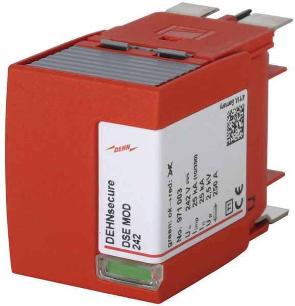 Schutzmodul für DEHNsecure modular, Klassifikation Typ 1 nach EN 61643-11 auf Funkenstreckenbasis.