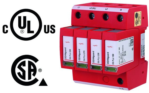 Mehrpoliger Überspannungsableiter DEHNguard MU, Open-Type 1 SPD nach ANSI/UL 1449 bestehend aus Basisteil und gesteckten Schutzmodulen. Hohe Gerätesicherheit durch Ableiterüberwachung mit Thermo-Dynamik-Control. Ermöglicht Endgeräteschutz. Zum Schutz von 3 Phase High-leg Delta Systemen.