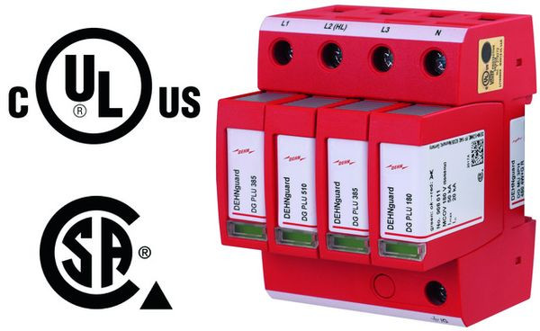 Mehrpoliger Überspannungsableiter DEHNguard MU, Open-Type 1 SPD nach ANSI/UL 1449 bestehend aus Basisteil und gesteckten Schutzmodulen. Hohe Gerätesicherheit durch Ableiterüberwachung mit Thermo-Dynamik-Control. Ermöglicht Endgeräteschutz. Zum Schutz von 3 Phase High-leg Delta Systemen.