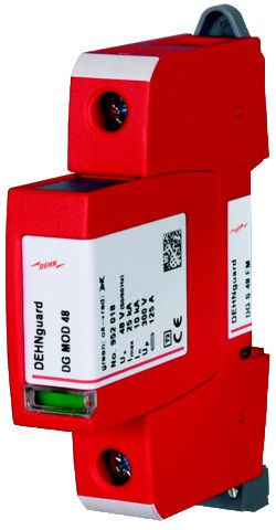 zweiteilig, bestehend aus Basisteil und gestecktem Schutzbaustein; optional mit potentialfreiem Fernmeldekontakt Einpoliger Überspannungsableiter DEHNguard S, Typ 2 nach EN 61643-11, bestehend aus Basisteil und gestecktem Schutzmodul. Hohe Gerätesicherheit durch Ableiterüberwachung mit Thermo-Dynamik-Control. Zum Schutz von Niederspannungs-Verbraucheranlagen vor Überspannungen. Zum Einsatz im Blitz-Schutzzonen-Konzept an den Schnittstellen 0B – 1 und höher.