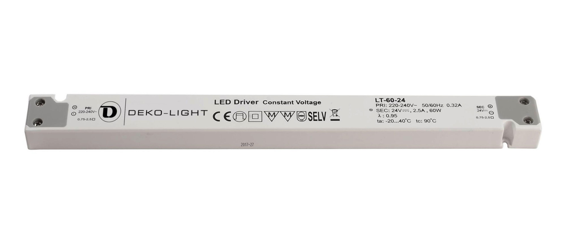 | Kurzbeschreibung | Deko-Light, Netzgerät (CV, DC), LONG-FLAT, CV, LT-60-24, Spannungskonstant, 60.0 |