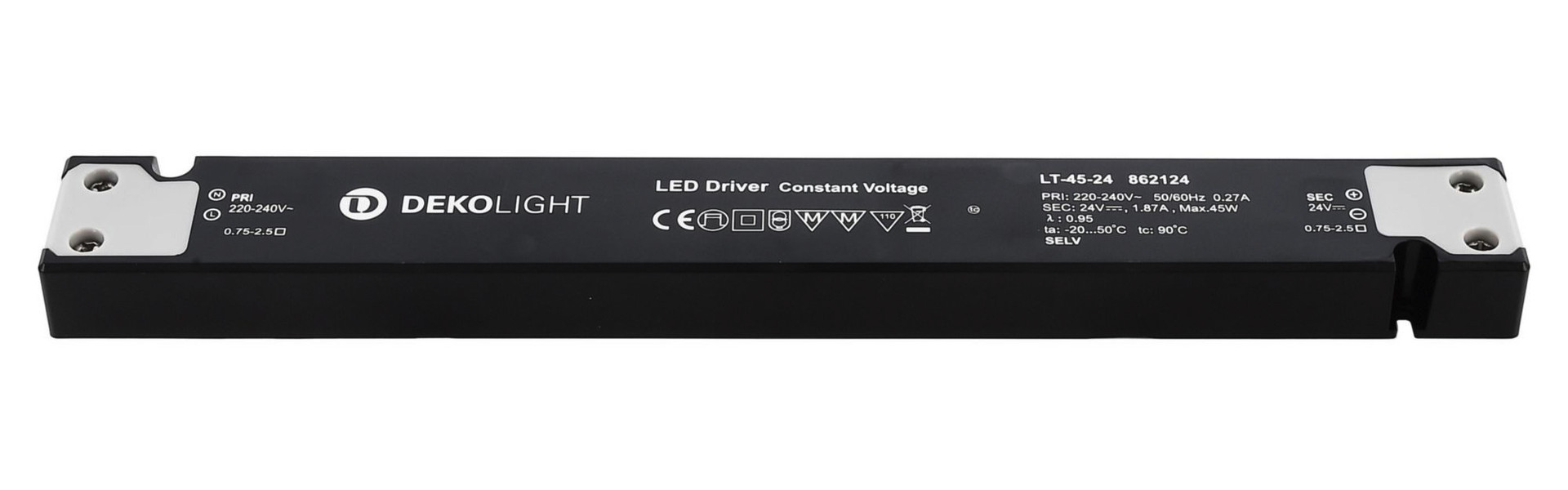 | Kurzbeschreibung | Deko-Light, Netzgerät (CV, DC), LONG-FLAT, CV, LT-45-24, Spannungskonstant, 45.0 |