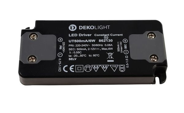 Deko-Light, Netzgerät (CC, DC), FLAT, CC, UT500mA/6W, Stromkonstant, 1,0-6,0 W, Eingangsspannung: 220-240 V/AC, Ausgangsspannung: 2-12 V/DC, IP 20