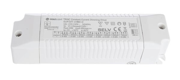 Deko-Light, Netzgerät (CC, DC) dimmbar, BASIC, DIM, Multi CC, 20T, Stromkonstant, Dimmbar: Ja, Phasenanschnittsdimmer, Phasenabschnittsdimmer, 3,2-20,0 W, Eingangsspannung: 200-240 V/AC, Bemessungsstrom: 120 mA, Ausgangsspannung: 9-40 V/DC, IP 20