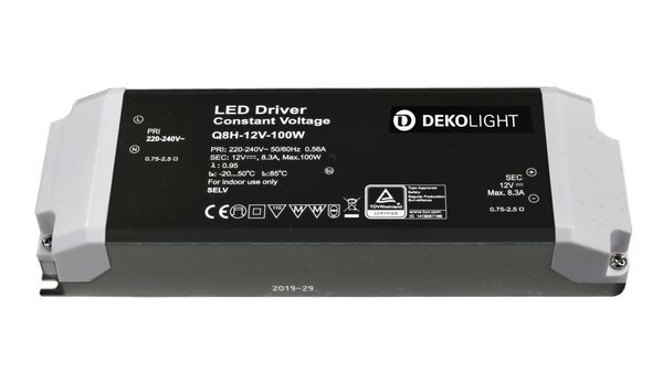 Deko-Light, Netzgerät (CV, DC), BASIC, CV, Q8H-12-100 W, Spannungskonstant, 100.0 W, Eingangsspannung: 220-240 V/AC, Ausgangsspannung: 12 V/DC, IP 20